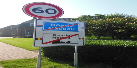 De bebouwde kom van Baarle gaat richting Alphen over in een uitgestrekt agrarisch landschap met buurtschappen, vergezichten, koeien en grote boerderijen.