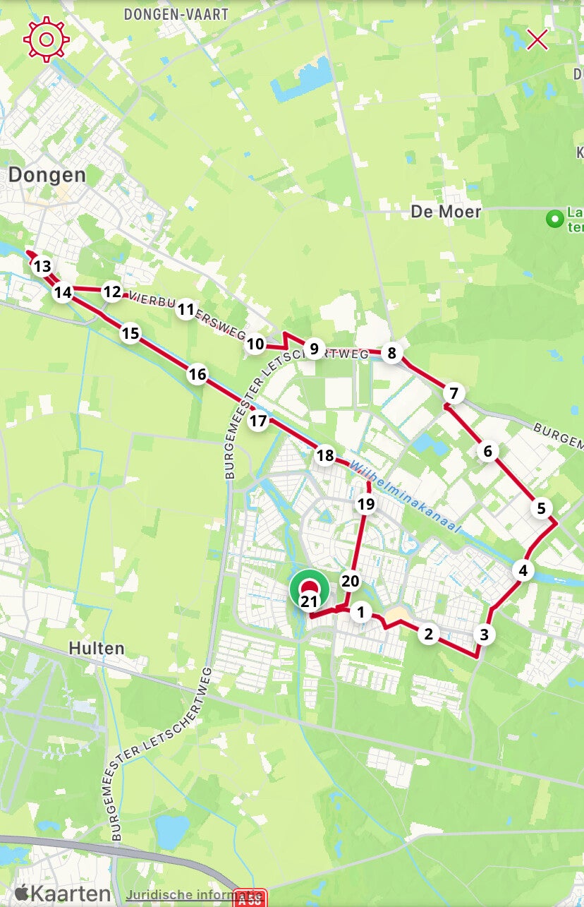 Vanmiddag rond 14:00 gestart met een wandeling om de Reeshof. In het begin wat regen gehad en later brak de zon door. Langs Wilhelminakanaal met wind in de rug voelde het warm aan. Tempo net als vorige keer 6,3 km/u en in de laatste kilometers wat verval. Op het fietspad naast de Vreeswijkstraat waren ze bezig met opnames. Naar later bleek ben ik Wanda, De Wandeltrainer, gepasseerd, die bezig was met haar werk voor de Bas van Goor Foundation. Over twee weken Nacht van Loon mis nog steeds uithoudingsvermogen en bekruipt met een gevoel dat dit niet goed komt.