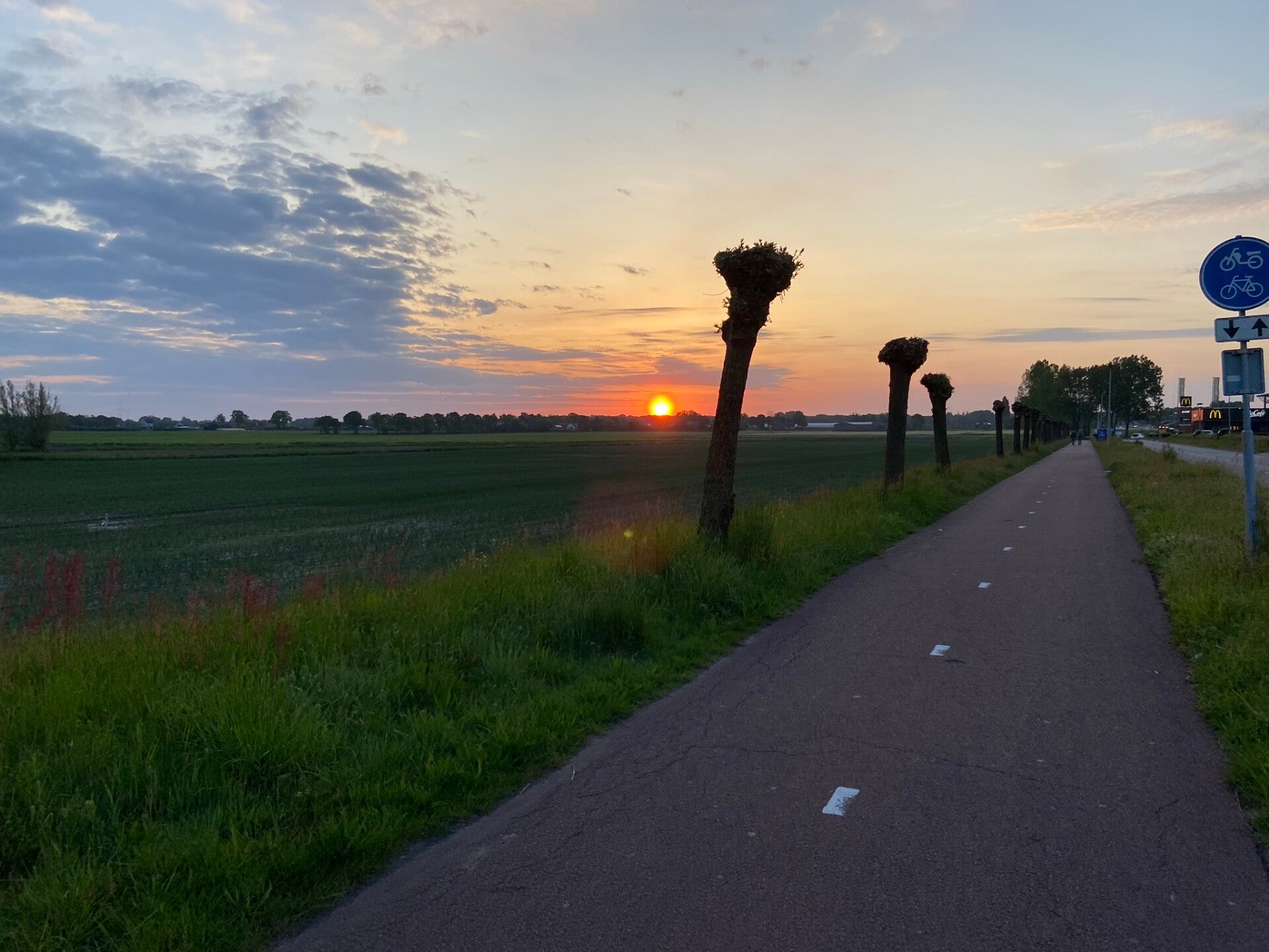 Voor mij het krachtigste moment van de nieuwe dag, zeker genieten dan. En wordt het dag. We zien meer van de omgeving waarin we lopen. Ondanks veel verhard heeft dit ook z’n charmes. Zeker als het je eerste Kennedymars is na lange tijd van blessures. Toch zie je wel veranderingen onderweg en ook herkenningspunten. Het genoemde Zandpad zien we nu bij daglicht, ziet er heel anders uit als in het schijnsel van je zaklamp in de nacht.