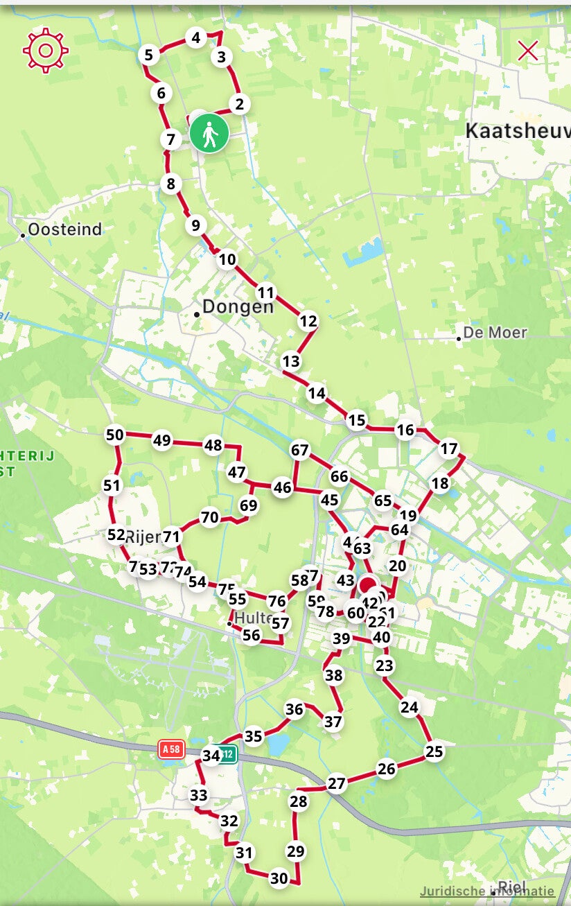 In de eerste aanleg wilden wij (Chris en ik) samen deze 80’er samenwandelen in de omgeving van Roosendaal. Vanwege probleem met mijn knie ging dit niet door. Het probleem knie doorgesproken met fysio. Probleem wordt een uitdaging telkens weer bij elke wandeling! Op 12-augustus spontaan (solo) deze virtuele gestart in ‘s Gravenmoer. Routes gegenereerd via Topo Gps en soms moeten aanpassen omdat er onverharde stukken en bospassages inzaten. En ging deze keer alleen voor verhard.