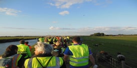 Na de 2e rustpost gaan we weer over grasdijken naar de 4e verzorgingspost (51,0km) Poppelendam, Hekendorp en ondertussen begint het toch echt pittige tocht te worden over grasdijken, soms door een hek maar veelal erover heen. Maar oké wie A zegt moet ook aan D'wandel.