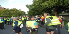 De 3e rustpost in Nieuwpoort op 66,5 km nog een laatste goede rust voordat we  verder gaan. Ondertussen lopen we met 4'n Lana, Saskia, Gerard en ikke. Gerard loopt wat vroeger aan (houdt het op niet te lang stil zitten) en wij volgen even later. Later zal blijken dat er even later wel iets meer is geworden omdat we de verwachting hadden eerder weer aan te sluiten. Na de rust volgen we de rode pijlen met logo SWD. En is er een samenkomst met andere afstanden. Op naar de volgende verzorgingspost maar ondertussen gaan we naar de aansluiting met Gerard.