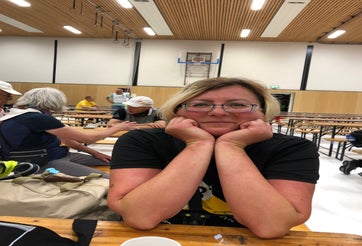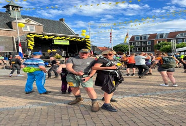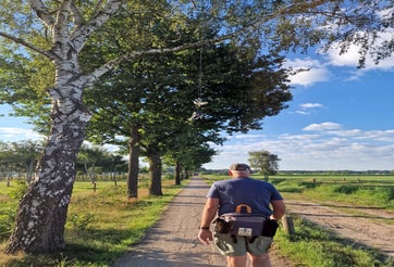 En dan mijn 3e Kennedymars in Someren. (2x eerder en in ‘22 de Challenge) Al vroeg in Someren om mijn startnummer en sfeer te proeven. Mijn wandelmaatje had afgezegd en wilde solo gaan. In de drukte merkte ik dat mijn bidon uit de tas verdween en bij het omkijken stond daar Lana. Zij ging voor de 1e keer in Someren en dus gingen we samen op pad. Het parcours was aangepast en ook  de keuze tussen verhard en een natuurpad over de Stabrechtse heide.