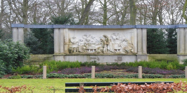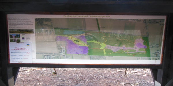 Na even een korte pauze en alles klaar voor de achtste etappe naar Griendtsveen, gaan we weer op pad. We steken we de verharde weg over en vervolgen de route. Na het passeren van de slagboom "Ledeboerlaan" begeven we ons op een grindpad verder over de Stippelberg. Na enige tijd lopen we tegen een hekwerk aan en na het passeren gaan we richting "Oude Bakelse Dijk" (blijkt een zandpad) en we gaan eerst door een hekwerk en vervolgen dit zandpad. Na verloop van tijd verlaten we de dijk en het afgezette gedeelte en helaas geen grazers gezien. En lopen tegen een stroompje aan "De Snelle Loop", geinig", maar gaan gelijk weer rechtsaf en komen uiteindelijk op een fietspad uit langs een waterloop (na later blijkt zitten we op een kop van de voormalige vliegbasis "De Peel"). Na verloop van tijd aan de overkant van de waterloop, een bord met de tekst "Freya en Würzburg radars" met erachter de restanten van een Freya Radar. Passeren onderweg weer een visvijver "Weth. Slitsvijver" (HSV de Middenpeel) en na wat tijd passeren we de "Karweische Loop" en vervolgens wandelen we "De Pelen - Deurnsche Peel" in, supermooi en zo herkenbaar. Vervolgens staan we voor het Defensiekanaal ("Vredepeel") en wandelen we hier langs de Peel-Raamstelling, oude kazematten bewoont door vleermuizen en 4,5 tot 5 kilometer wandelen we langs het Defensiekanaal/Peel-Raamstelling passeren ondertussen diverse (ben de tel kwijt geraakt) kazematten. Nadat wij de verharde weg opgaan passeren we de provinciegrens en bevinden ons in Limburg. Ondertussen naderen we het einde van deze etappe Griendtsveen. We wandelen nog een stukje langs Helenavaart en bereiken het eindpunt "St. Barbarakerk" in Griendtsveen. In afwachting van mijn vervoer wordt ik aangesproken door een "local" en deze legt mijn e.e.a. uit over Griendtsveen. Het dorp is gesticht door twee zonen van Jan van der Griendt. Zelf stichtte Jan van der Griend "Helenaveen" genoemd naar zijn echtgenote. de kerk heeft een neogotische bouwstijl. Is ontworpen volgens deze "local" door de architect die ook de Ridderzaal in Den Haag heeft ontworpen en heeft een gelijkenis ermee. Ze wilden een postkantoor in het dorp alleen de PTT wilde er niet aan dus hebben ze er zelf een gebouwd. In dit dorp ligt Toon Kortooms begraven. De bekende Brabantse romanschrijver "Beekman en Beekman - Mijn kinderen eten turf - Help, de dokter verzuipt" is geboren in Deurne maar groeide op in Griendtsveen. Vandaar zijn boeken over "De Peel" gaan. Heerlijk super leuke boeken, zo herkenbaar. Het monument staat voor de kerk. Vandaag weer een mooie wandeling gedaan, zoals al aangegeven het was rustig onderweg en de enigste drukte was op de P-plaats tijdens de overgang naar de volgende etappe. Totaal afstand: 42,16 km = 164,75 km (eigen opname).